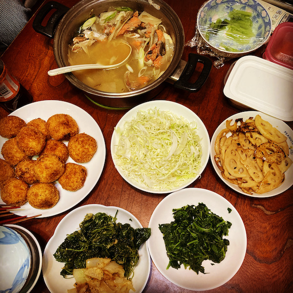 コロッケの他、鮭のあら汁や、蓮根のきんぴらなども!