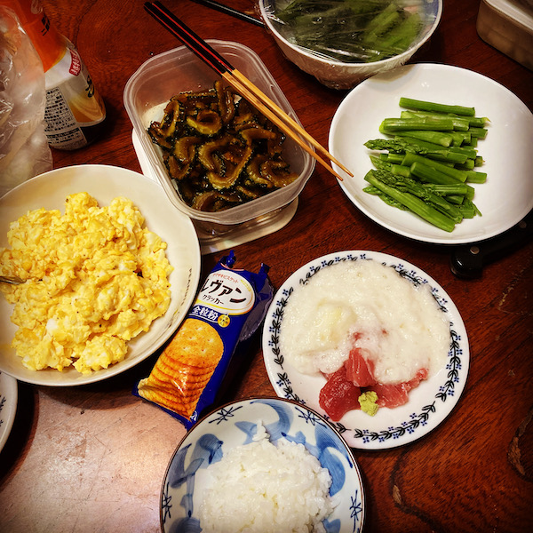 晩御飯作成は、ゆで卵を潰して卵サラダにする部分のみ手伝いました。