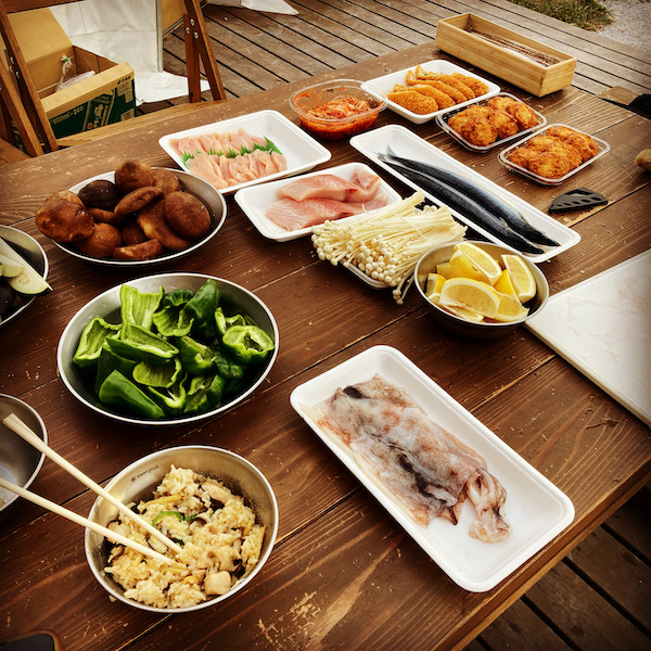 私は1人でゲストハウス宿泊なのだが、皆さんが宿泊するグランピングヴィレッジというところにお邪魔して、バーベキューに混ざる。