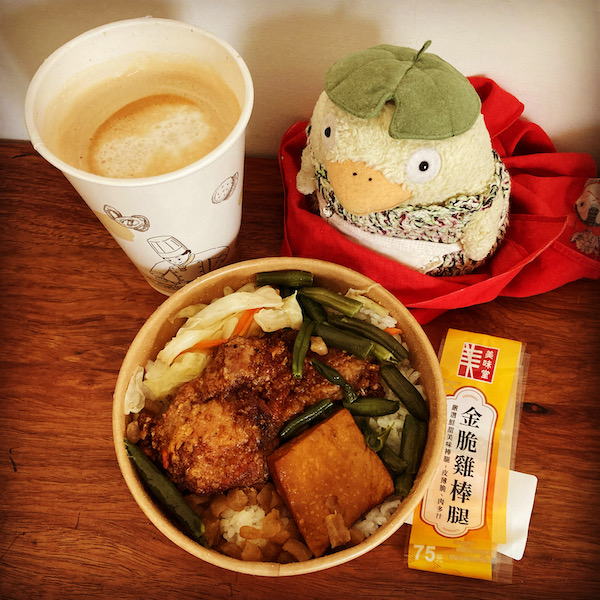 温かいお弁当を売ってるコーナーがあって、それを一度買ってみたいと思っていたので、買いました!残り3個であった!75元の鶏肉のお弁当にしました!飲むヨーグルトと、ティッシュがもう無かったので1パック買う。あとラテを買いました。持参のカップで買うと5元引きになるので、先日緑豆ミルク買った時のカップを洗って持って行きました。マイカップで買うにしても持ち歩き用マグとかで買うんであって、紙コップ持ってくる人はほとんど居ないと思いますがね・・・!