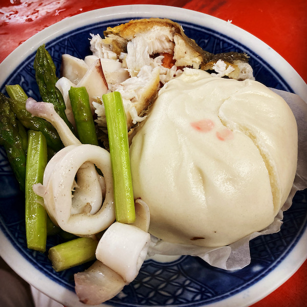 お昼ご飯はおかず&野菜まん。