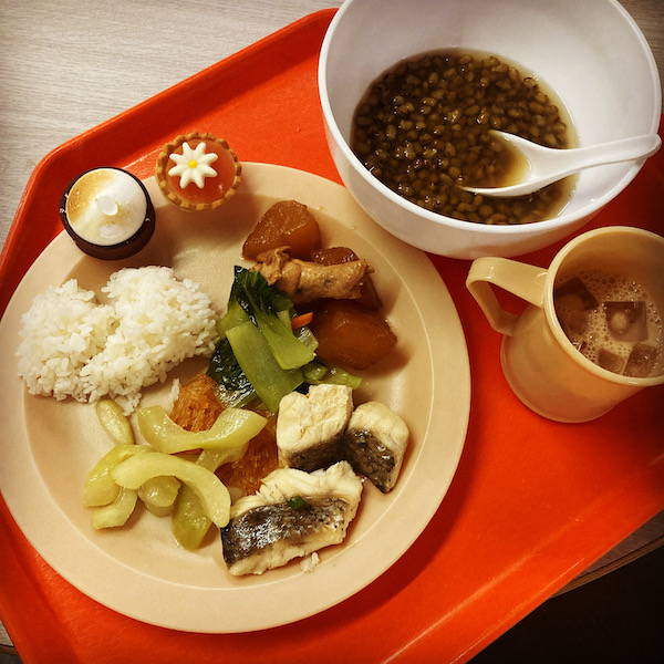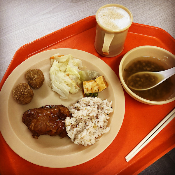 白身魚おいしーい。味が薄めでとても良い。この食堂、肉とか煮込み系はしっかりめに味ついてるけど、魚は薄味で私好み!!(肉もしょっぱ過ぎるってことはない)