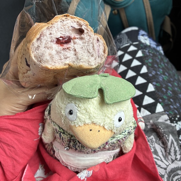 乗ってすぐに昨日買ったパンを食べてしまいました。